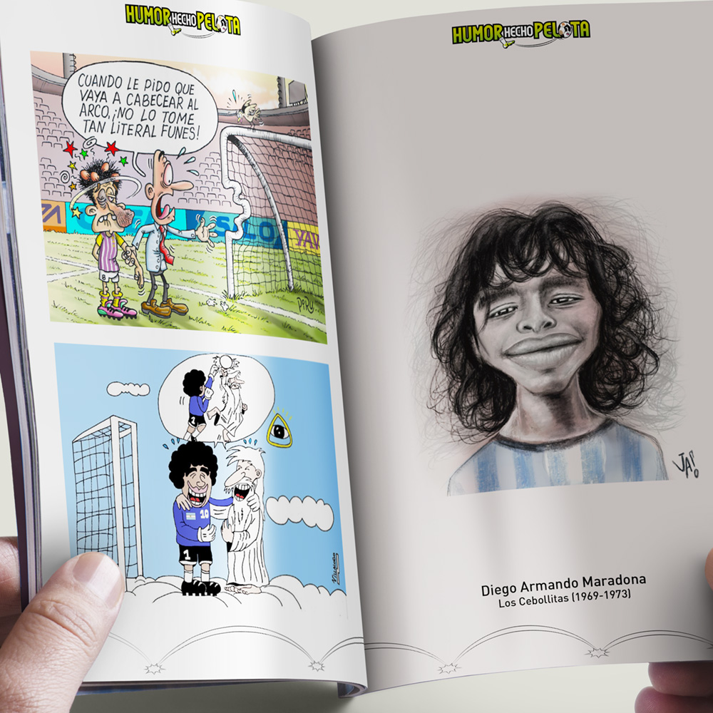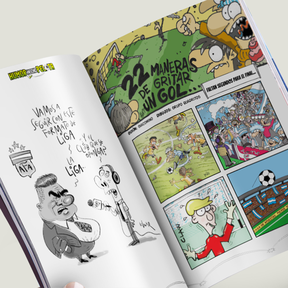HUMOR HECHO PELOTA es un libro de humor gráfico que reúne viñetas, textos y comics dedicados al fútbol y a toda la cultura que lo rodea. A través de una mirada ácida, sensible y profundamente argentina, la obra retrata la pasión por la pelota dentro y fuera de la cancha: los hinchas, los equipos, las selecciones y, sobre todo, esas pequeñas grandes escenas cotidianas y familiares que convierten cada partido en una experiencia compartida.